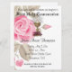 Beautiful Traditional First Holy Communion Invitation. with pink roses, gold chalice & host. All text and fonts can be easily modified. We also offer matching Communion cards, favours, labels, etc., with this design. Visit the Shower of Roses Shoppe on Zazzle and browse our large First Holy Communion collection.