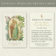 Featuring a beautiful traditional Catholic image of the image of the betrothal of Mary and Joseph with a decorative gold border accented with various colour flowers and a white lace background. A prayer is on the back for the bride and groom. All text and fonts can be modified.