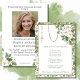 These are beautiful custom designed traditional Catholic funeral thank you notes with the holy rosary overlaid on a white floral design. Also included is the photo and information of loved one. All text and fonts can be modified. We also offer matching funeral memorial holy cards.