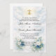 Catholic Gold Crucifix Blue and White Floral Invitation