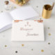 Front design features the elegant image of roses cascading at top. A cross is displayed in centre of two hearts. Names of bride and groom are featured below. All text and images are featured in an elegant foil. Customer is given the option of either gold, silver or rose-gold foil.