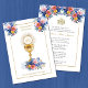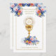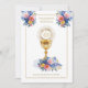 Celebrating the Sacrament of First Holy Communion is a wondrous occasion. This traditional Catholic custom-designed vintage First Holy Communion Invitation with the Chalice and the Holy Eucharist with pink and blue flowers is sure to express the beauty and solemnity of this special day. All text and fonts can be easily modified.