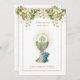 Celebrating the Sacrament of First Holy Communion is a wondrous occasion. This traditional Catholic custom-designed vintage First Holy Communion Invitation with the Chalice and the Holy Eucharist with white flowers and gold accents is sure to express the beauty and solemnity of this special day. All text and fonts can be easily modified.