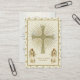 Featuring a beautiful customised image a gold cross with the Eucharist and angels adoring on each side. The back has a beautiful traditional Catholic prayer of the Paschal Homily of St. John Chrysostom with an image of the Resurrected Christ.