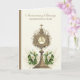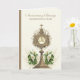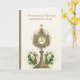 Featuring a beautiful card for a Catholic Priest celebrating his 50th Anniversary of Ordination with a Gold Monstrance and Eucharist adorned with white calla lilies. All text and fonts may be modified.