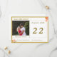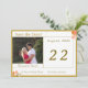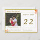 Design features the photo you provide as main design. Heading is displayed at top left in a gold-coloured font against a white rectangular background framed in a thin, golden border. Names of Bride and Groom are featured in same gold text against a white backing below photo.