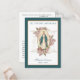 Featuring a beautiful blue floral traditional Catholic image of the Blessed Virgin Mary, Our Lady of Grace overlaid on pink roses and vintage design.
