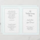 Folded wedding program template for a catholic ceremony. This layered-look program contains white panels over pale green. Each page has space for lots of text to accommodate a traditional church marriage ceremony. The last page (back of program) includes a section for scripture (sample is "love is patient" from 1 Corinthians) and a thank-you message from the bride and groom.