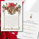 Featuring a beautiful traditional Catholic image of the image of the betrothal of Mary and Joseph overlaid on an ornate gold frame with red poinsettias with a beautiful prayer for the wedding couple. All text and fonts can be modified.