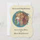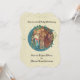 Beautiful traditional Catholic floral wreath framed wedding invitation of the betrothal of Mary & Joseph with the High Priest in the temple. All text may be easily customised. The background is an ecru lace design.
