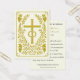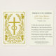 A timeless Catholic wedding keepsake beautifully featuring a gold-embossed cross with interlocking wedding bands, framed by grape clusters and symbolic foliage representing the fruitful union of Holy Matrimony. The front of this sacred design recalls the dignity of the sacrament, while the reverse offers a prayerful reflection and personalisation with the couple’s names and wedding date. A reverent memento for Catholic nuptials, ideal for distributing at the Nuptial Mass or as a lasting token of sacramental grace.