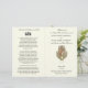 The image on front features a vintage image of the Blessed Virgin and St. Joseph exchanging their wedding vows . The back of the program has a beautiful prayer for the bride and groom. Three hearts above the prayer represent Jesus, Mary, & St. Joseph. Inside includes a prayer for remembering loved ones who have passed and a thank you to all who have attended.