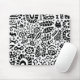 A mouse pad with an unusual semi-abstract design made up of strange surreal shapes, perhaps the kind of dream one's cat might have after eating too much catnip. :)