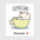Catpuccino Funny Kitty Cat In Cup Pun features a cute kitty cat sleeping in a coffee cup. Funny pun gift for family and friends who love a cup of pun with their cappuccino.