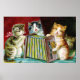 Vintage image of four cats with one playing a squeezebox and two singing along.