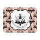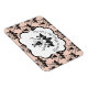 Express your love of cats with a flexible magnet adorned with a pretty damask look pattern featuring a linear cat motif in a relaxed pose surrounded by catnip leaves and flowers in black silhouette. Easily customise the background colour and text to suit your style or decor.