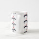 Black, red and white coffee mug with black cats and hearts.