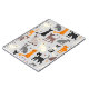 White cat, black cat, tabby cat, Persian cat, Siamese cat, tuxedo cat with paw prints on a light coloured background.