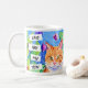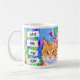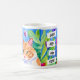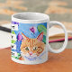 Whimsical folk art watercolor orange cat and blue and purple flowers coffee cup. Quote, "Cats are my Tribe." generativecontent