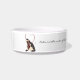 Cat Bowl for food or water with folk art picture of a black and white kitty cat wearing a burgundy satin ribbon bow. Personalise with your own text. Text reads Cats are the centre of the universe. Perfect for cat lovers. Design, background & layout: Deborah Miller www.zazzle.com/visages Cat: Trina Clark digiscrapkits.com/