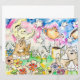 Many of my designs feature cranky-looking cats and Halloween subject matter. I wanted to create something that would be relatable to a wider audience. This was the result: Cats-- one happy, one bemused-- amongst a field of primrose, aster, periwinkle, and buttercup under a starry sky... with, of course, coffee floating nearby! It would make a cheerful piece displayed as art or serve as a greeting card for any occassion.