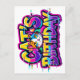 Vibrant and energetic "Cat's Birthday" design in bold rainbow gradient with cool glitch effect, bright neon outlines and a cute colourful cat face in the centre.