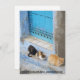 Cats napping in the doorway of one of the famous blue buildings of Chefchaouen, Morocco.