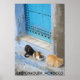 Cats napping in the doorway of one of the famous blue buildings of Chefchaouen, Morocco.