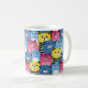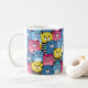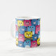 A colourful mug featuring a playful pattern of cartoon cats in various colours and expressions.