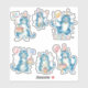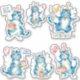 6 watercolor illustrations of blue cats celebrating a birthday. 🐱