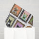 Framed portraits of many coloured cats and kittens on fun tissue paper.