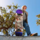 Cats in space pizza skateboard