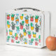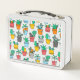 This is a standard metal lunchbox that appears to work just fine. We designed this box ourselves with an uploaded photo and custom text on the front and back. It looks absolutely beautiful except the front of the lunchbox is not centered like it shows in the photo. The print borders don't align with the inset flat part of the box where the preview photo online showed it perfectly centered in there. The back looks nice and centered though.