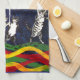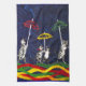 Whimsical illustration by Louis Wain of cats walking in the rain carrying colourful umbrellas.