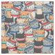 A pattern of many different cats staying cosy warm in the cold by wearing winter hats and scarves! There is a bunch of different cats - orange cats, white cats, black cats, grey cats - and each with their own unique expression.