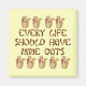 "Every life should have nine cats!" A funny version of the "A cat has nine lives" saying - with nine comical cats as a graphic border. The perfect design for you if you love cats, and a cool gift for cat lovers, owners and breeders.