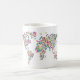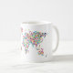 A map of the world made from colourfull silhouettes of cats on an white background.