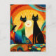 Abstract colorful artwork of two cats against a vibrant stylized background.