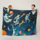 Cats Playing Basketball in Space with Astronauts Fleece Blanket