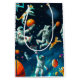 This cool computer-generated digital art graphic shows cats playing basketball in space with astronauts. Created with multiple image generations of the AI source DALL-E, this futuristic artwork is fun for fans of technology, space, astronauts, and cats!