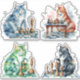 4 watercolor illustrations of cats playing chess. 🐱