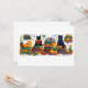 I chose the larger postcard sized one, as the font would be large for older eyes, and customised it keeping the Rail Ticket theme on the front, with venue address/date/time of party, and on the back I added another steam train and various 80 speed limit/rail signages. The trick is not to overdo it or it looks too busy. I also added at one end of the front side, a word of thanks from the birthday boy.