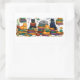 Cats Reading Books Cozy Library Scene Rectangular Sticker
