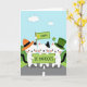 This card shows three stylized white cats lined up on a simple gray road, set in front of rolling emerald hills and a calm blue sky with puffy white clouds. Their close spacing and matching little “U”-shaped smiles give the scene a cozy, friendly closeness, like they’re posing together for a sweet holiday photo 💚. The left cat wears an orange top hat and holds a small flag that says “HAPPY” in dark letters beside a golden star. The middle cat has a black patch on one ear and helps hold a wide lime-green banner across the group. “ST. PATRICK’S” appears in bold, dark lettering centered on that banner, making it the main text on the front. On the right, the third cat wears a green top hat, balancing the color across the trio, while their tiny black eyes and rosy cheeks add a gentle, affectionate look. A single green shamrock floats near the upper right against the sky, like a little ☘️ hovering above the hills.