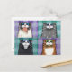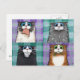 Whimsical cat art postcard. A montage of 4 original paintings 2008 Lisa Marie Robinson. Mozart loves Salmon, Statically Charged, Is There Something in my Teeth?, Biggles loves Grass