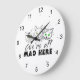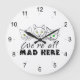 We're All Mad Here text and drawing of three funny cat faces with yellow and green eyes. Funny wall clock for anyone. Customizable. You can change the image.