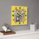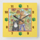 Whimsically painted illustration of cats Bud & Tony languishing in a Sunflower garden. This square wall clock has a bright sunflower yellow border with brown, easy to read numbers and green paw prints in the 12, 3, 6 and 9 o'clock time positions. Designed to appeal to all cat and sunflower or garden lovers. There is a 'paw print' hidden in plain sight in the illustration, see if you can find it.