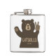The flask itself is fine. It’s a cheap flask, obviously bought in bulk, however am prepared to overlook that. Given that it is a personalized item, I would have liked to have seen gift boxing instead of the generic packaging. Terrible printing, and/or quality. It’s a cheap, tacky vinyl. It is not cut straight and is also applied in a way that it is overhanging the bottom, causing the glue to catch on items and it will eventually roll and tear, damaging the wrap.