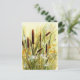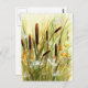 A watercolor image of a cattail field on a tee postcard