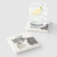 The coasters are gorgeous, a quality feel and heavy weight. They look like a precious archeological find. A rustic stone juxtaposed with a modern floral black and white print. I like the way the print goes slightly imperfect on the cut stone edges giving them a kind-of natural beauty.